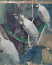 Vanuit een bestaand beeld vergroot en abstraheert Antoinette haar onderwerp. Zij schildert in olieverf of gemengde techniek, het liefst op groot formaat doek: “Ik kies mijn eigen kleurenpalet en werk met verschillend gereedschap. De verf gaat zijn eigen leven leiden en zo begint de zoektocht naar een nieuw schilderij.” Haar schilderijen zijn gebaseerd op de constante verandering in de kuststrook. Het getijde, de wisseling van eb en vloed, vormt structuren in het zand. De zandribbels, de aangespoelde stukken zeewier en de min of meer beschadigde voorwerpen die ze daar aantreft zijn vaak het begin van een schilderij. Ze schildert in olieverf of gemengde techniek op groot formaat doek. Ze vergroot haar onderwerpen dusdanig dat er een abstractie ontstaat. Ze spant haar werken niet op. De randen van het doek blijven zichtbaar, waardoor het werk puur en doorleefd oogt. |